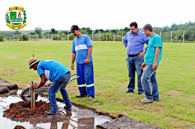 Os vereadores Adriano dos Santos e Silvio Monteiro, juntamente com o Prefeito Marcelo Vaqueli, estiveram nesta manhã (27 de Outubro), fiscalizando a obra de Drenagem no Campo de Futebol Municipal que está sendo construído no bairro RETIRO FELIZ.