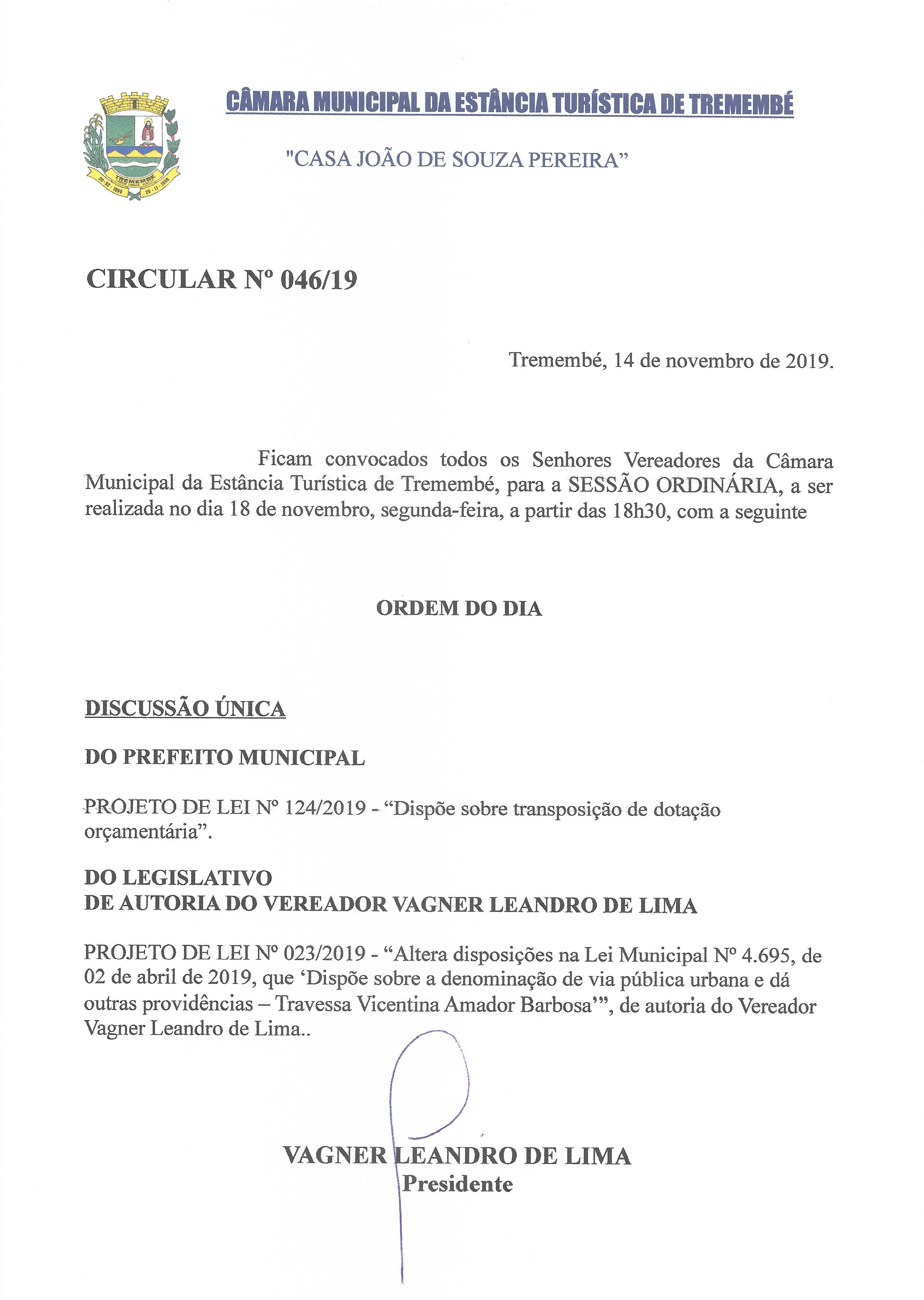 Ficam convocados todos os Senhores Vereadores da Câmara Municipal da Estância Turística de Tremembé, para a SESSÃO ORDINÁRIA, a ser realizada no dia 18 de novembro, segunda-feira, às 18h30. Leia mais...