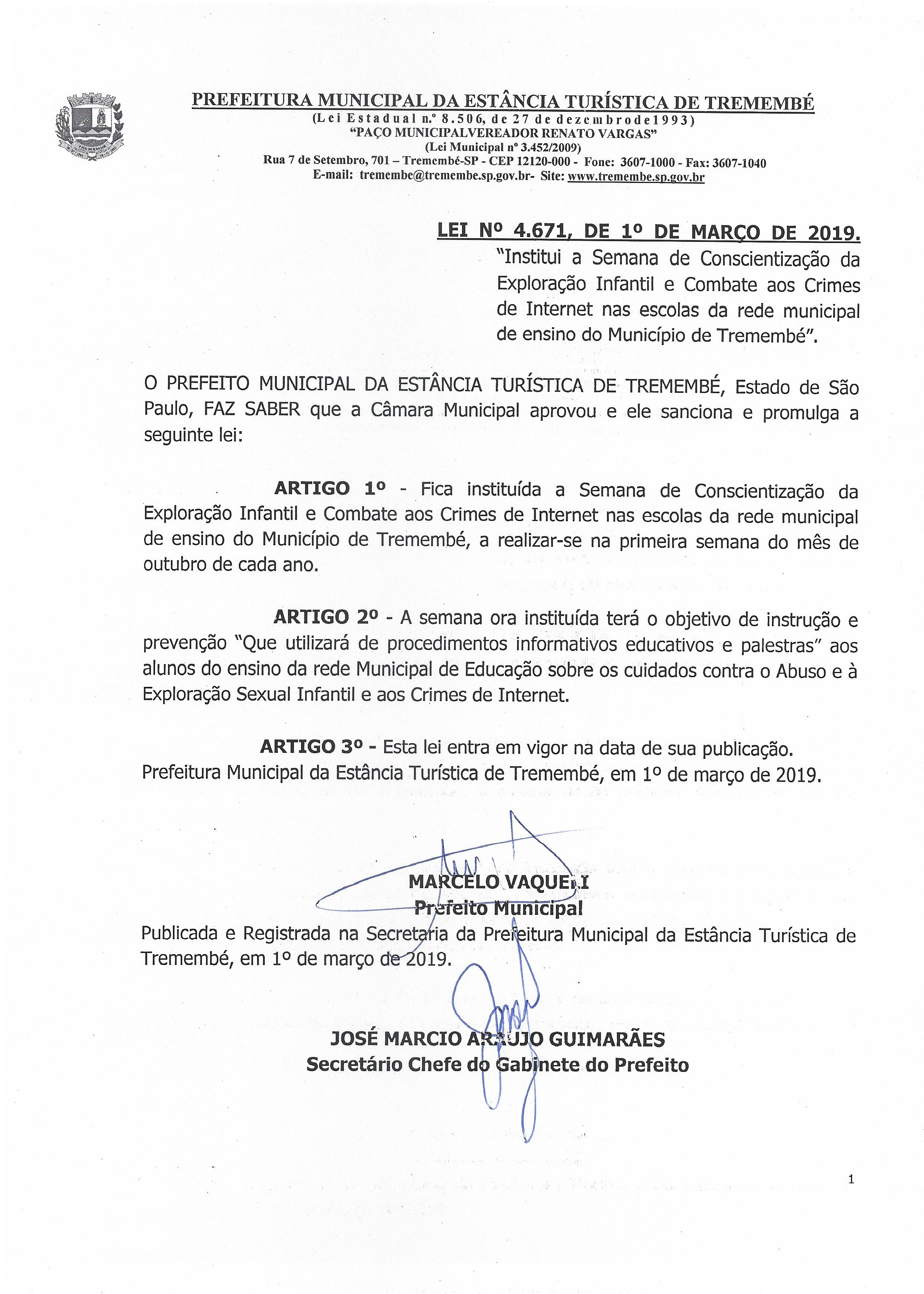 Lei nº 4.671 de 1º de março de 2019