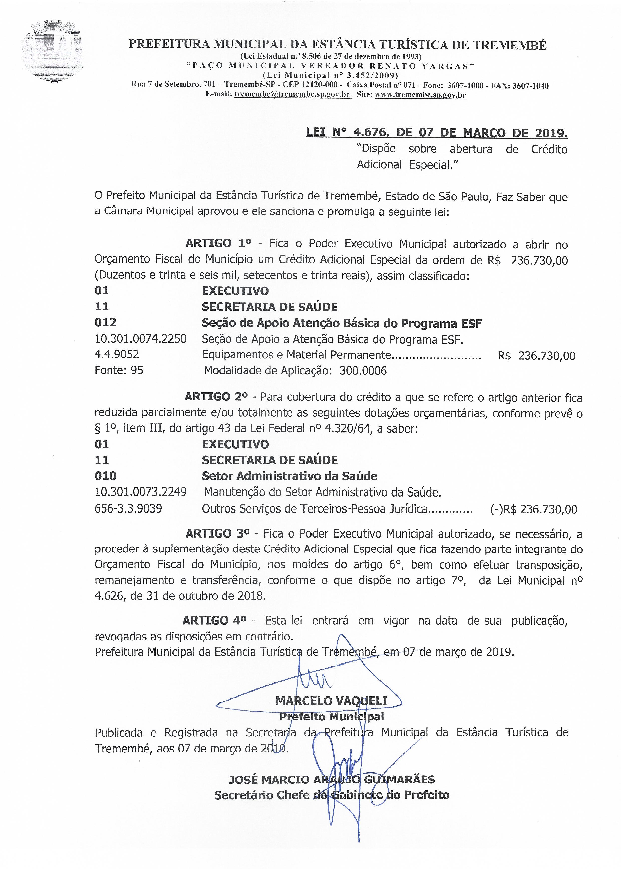 Lei nº 4.676 de 07 de março de 2019
