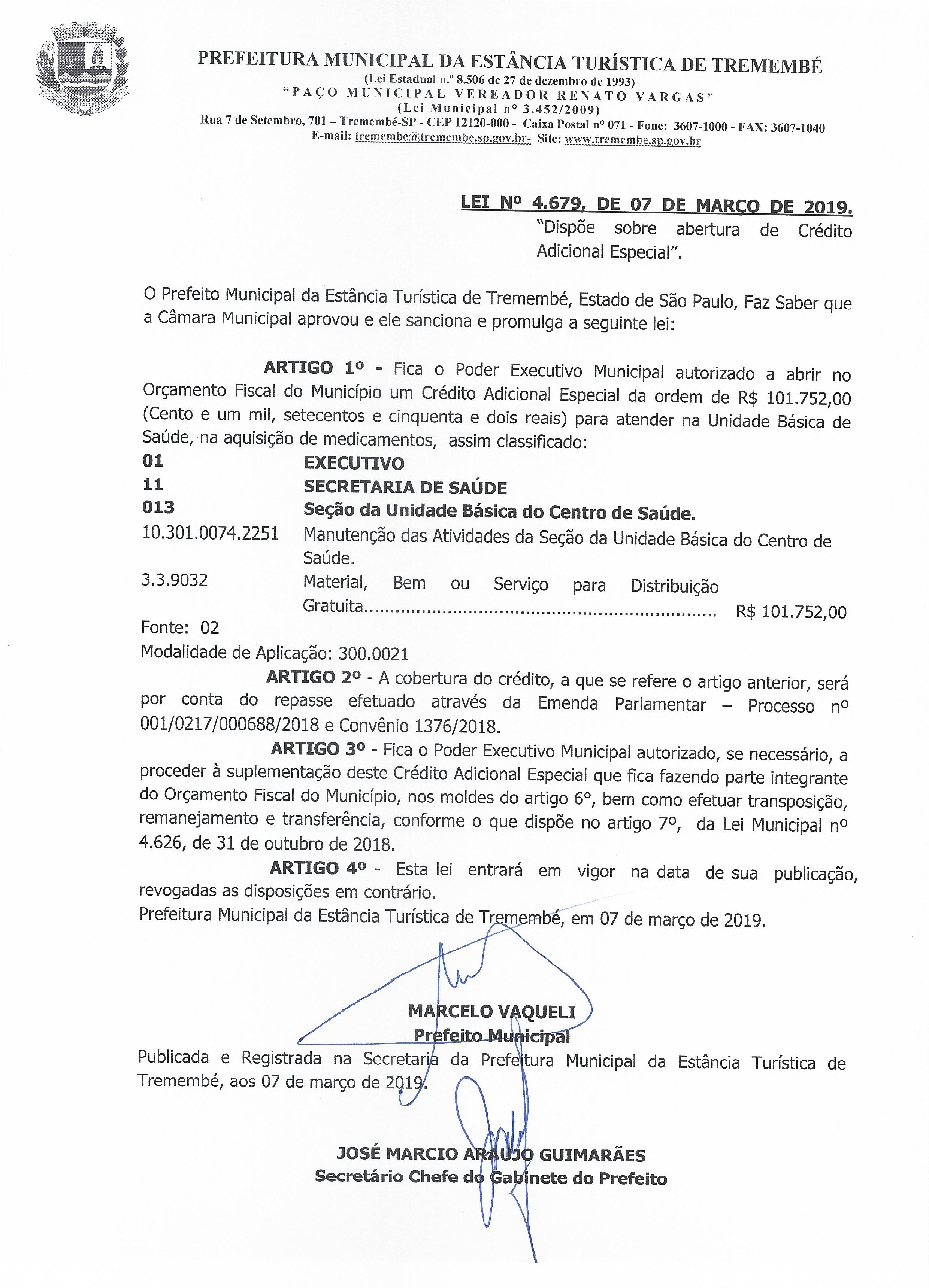 Lei nº 4.679 de 07 de março de 2019