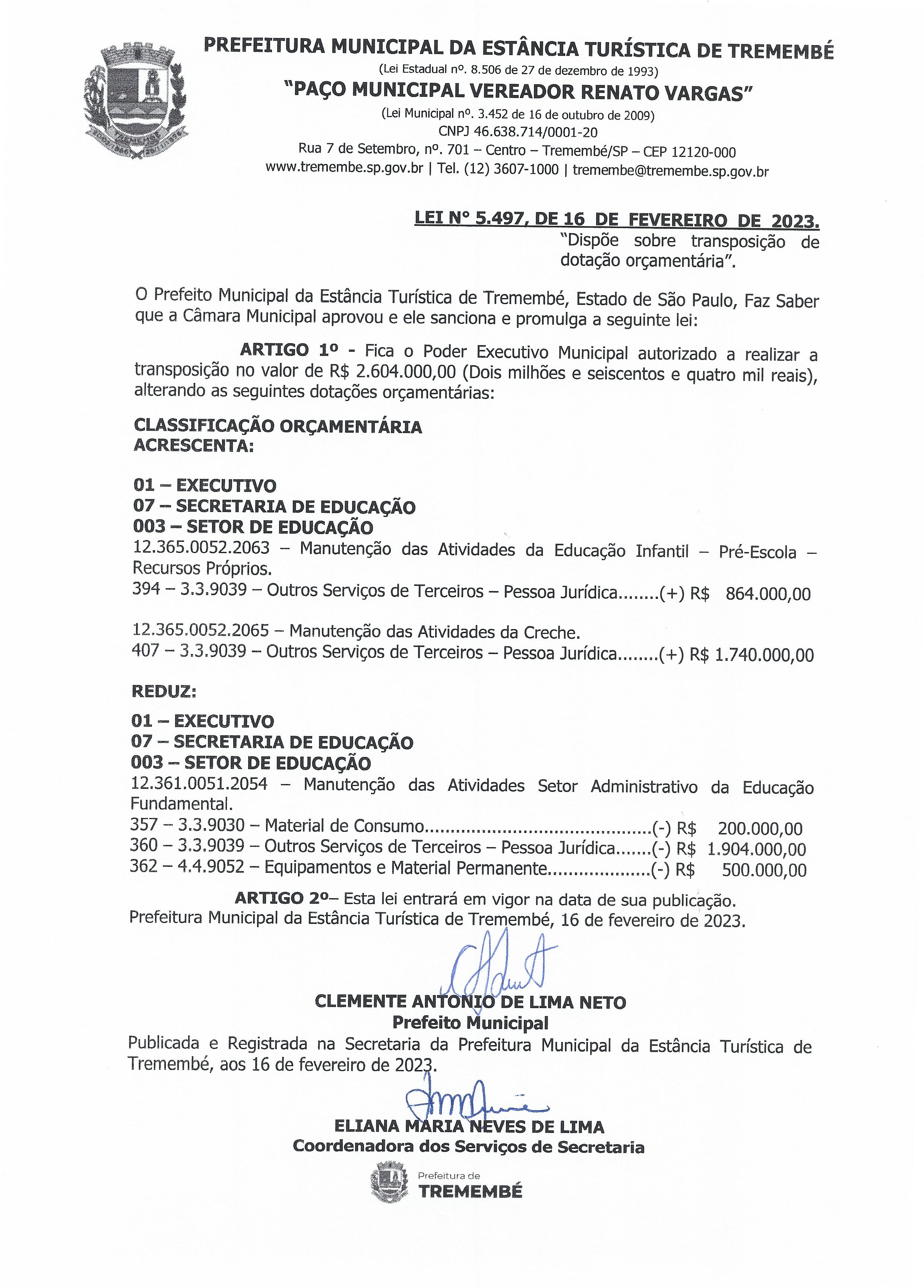 Lei nº 5.497, de 16 de fevereiro de 2023