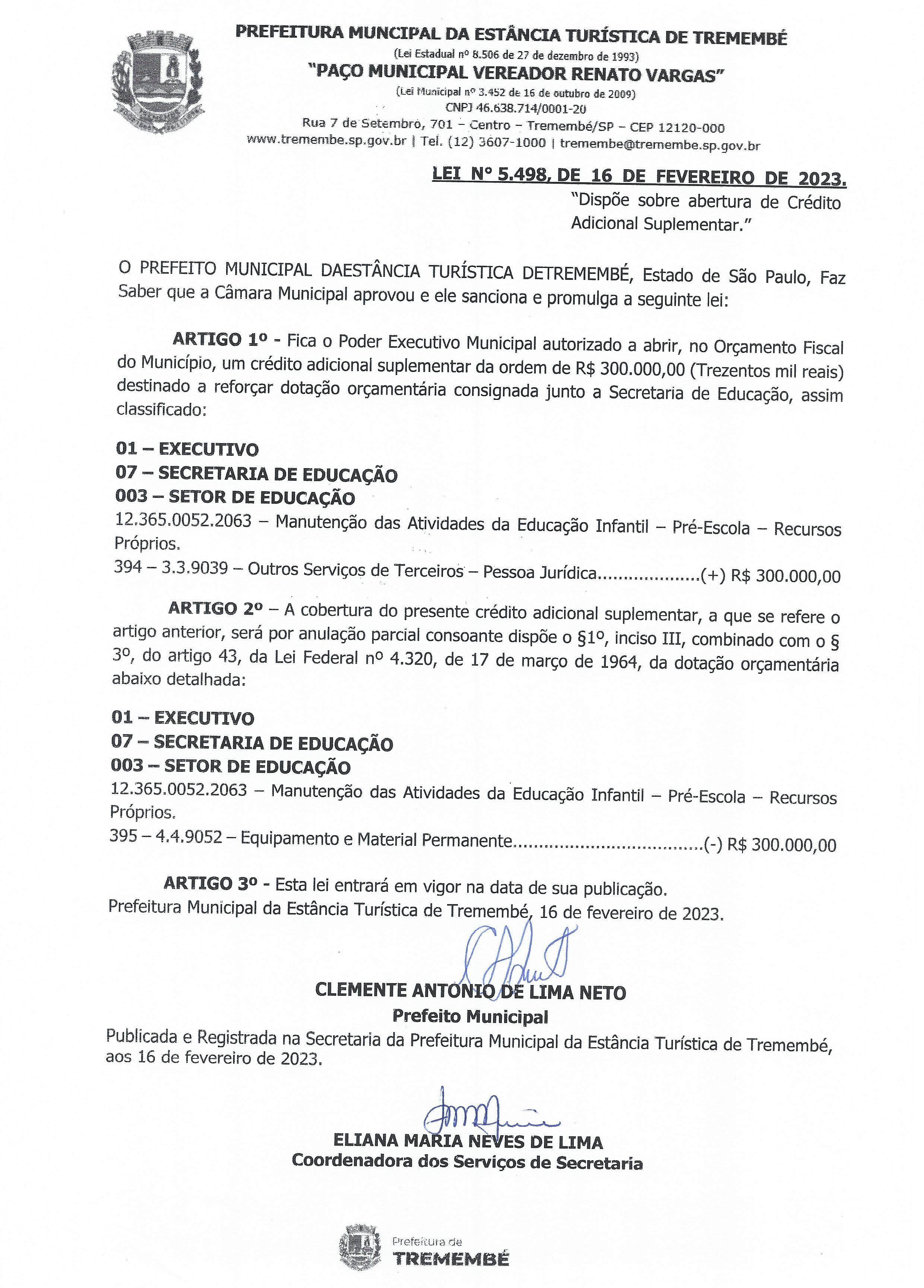 Lei nº 5.498, de 16 de fevereiro de 2023