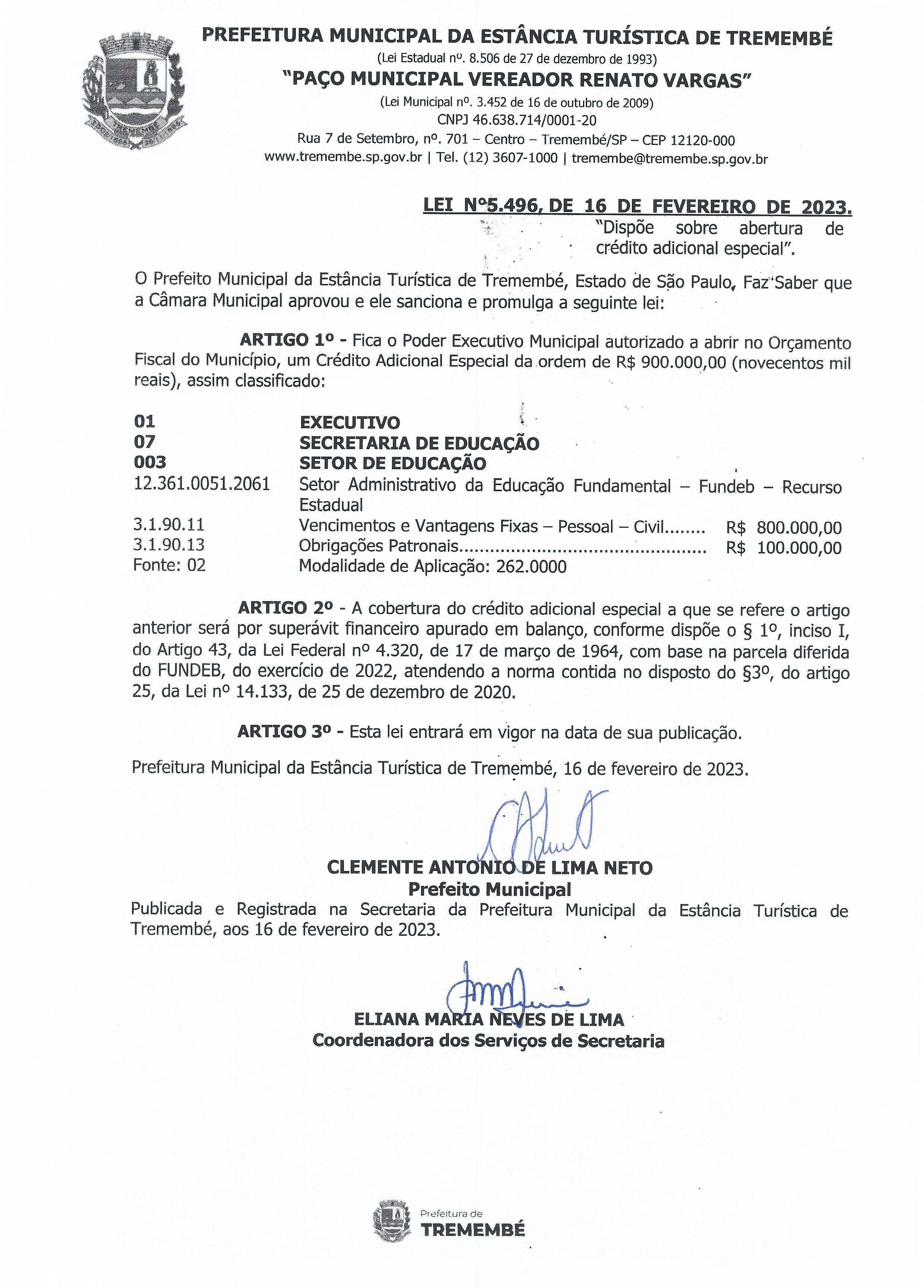 Lei nº 5.496, de 16 de fevereiro de 2023
