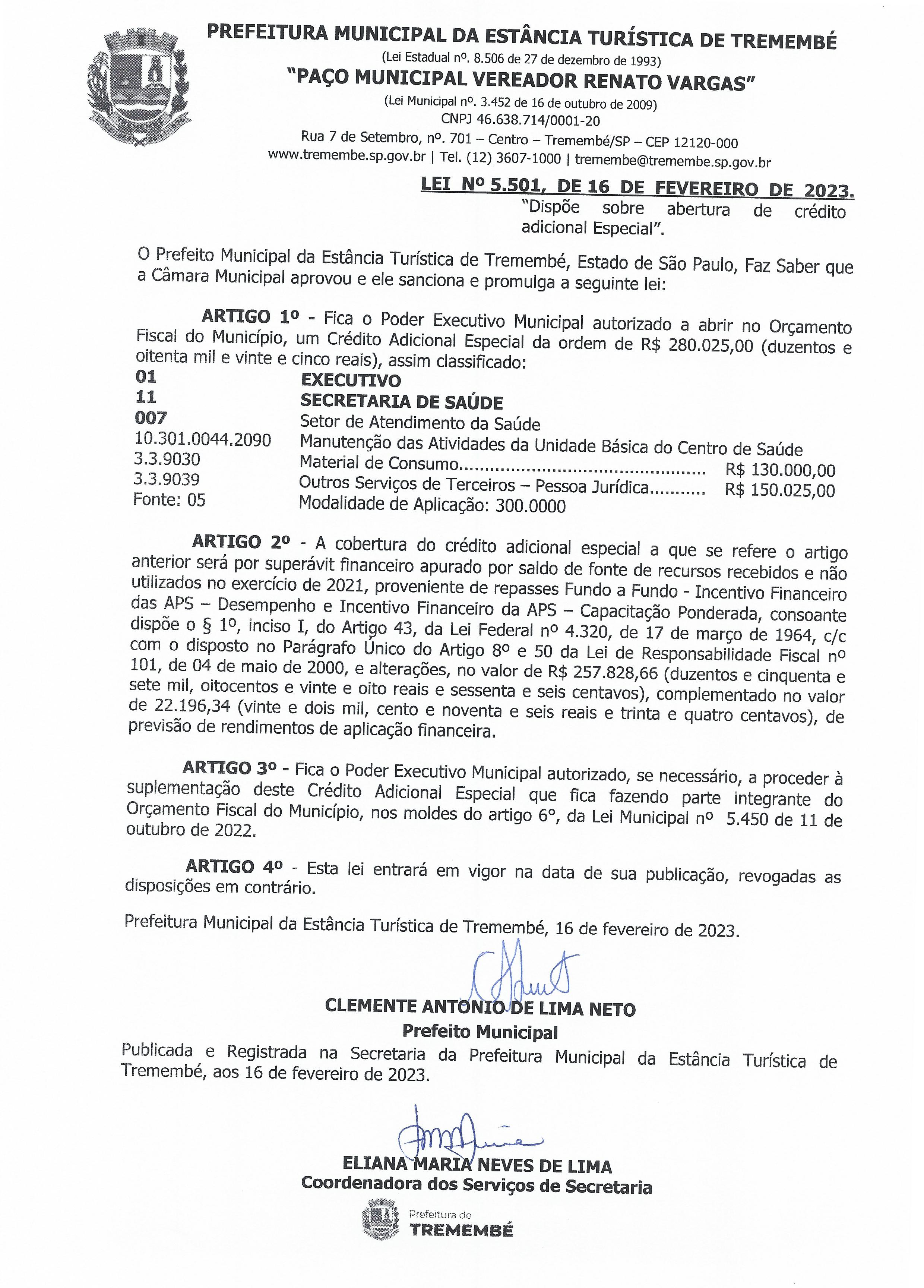 Lei nº 5.501, de 16 de fevereiro de 2023