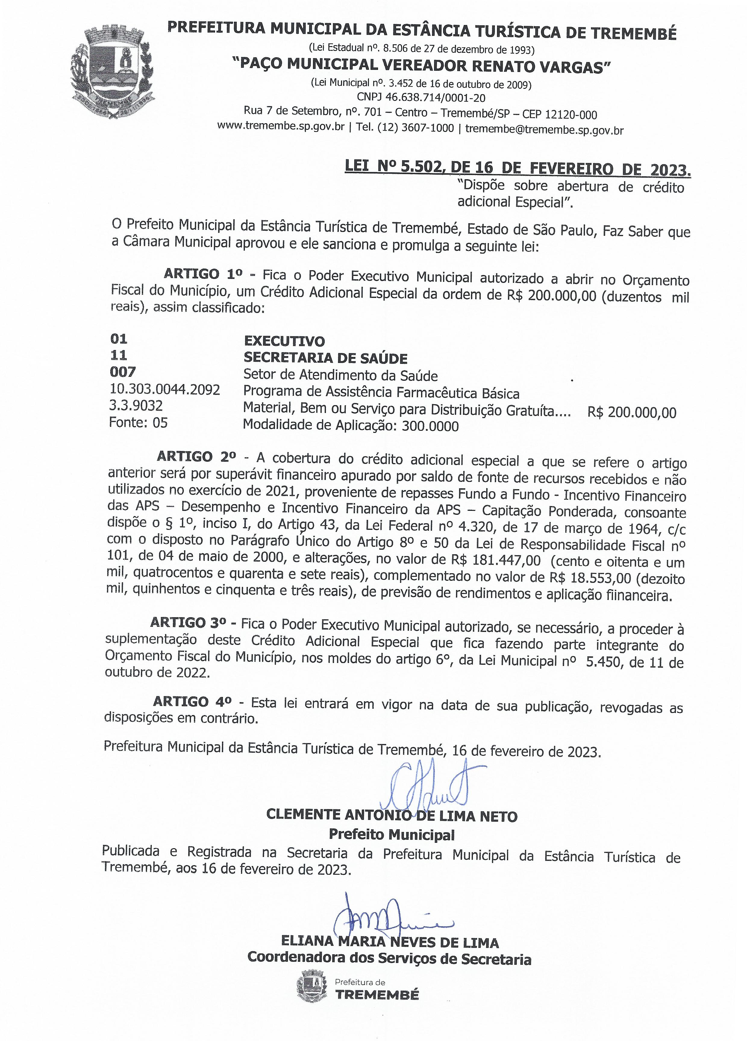 Lei nº 5.502, de 16 de fevereiro de 2023