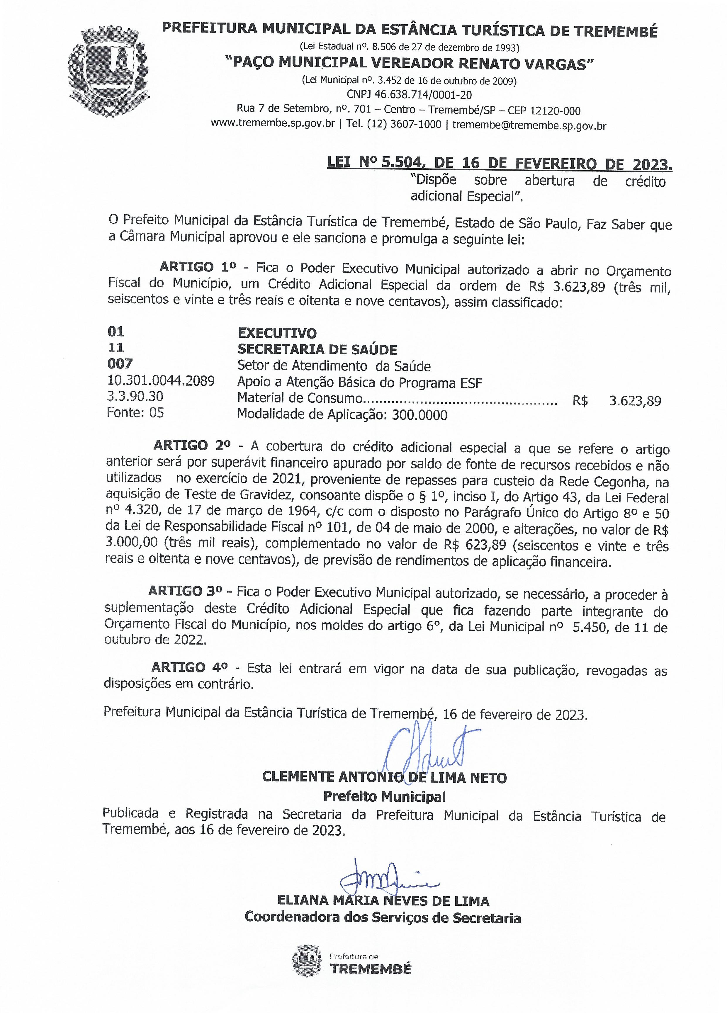 Lei nº 5.504, de 16 de fevereiro de 2023