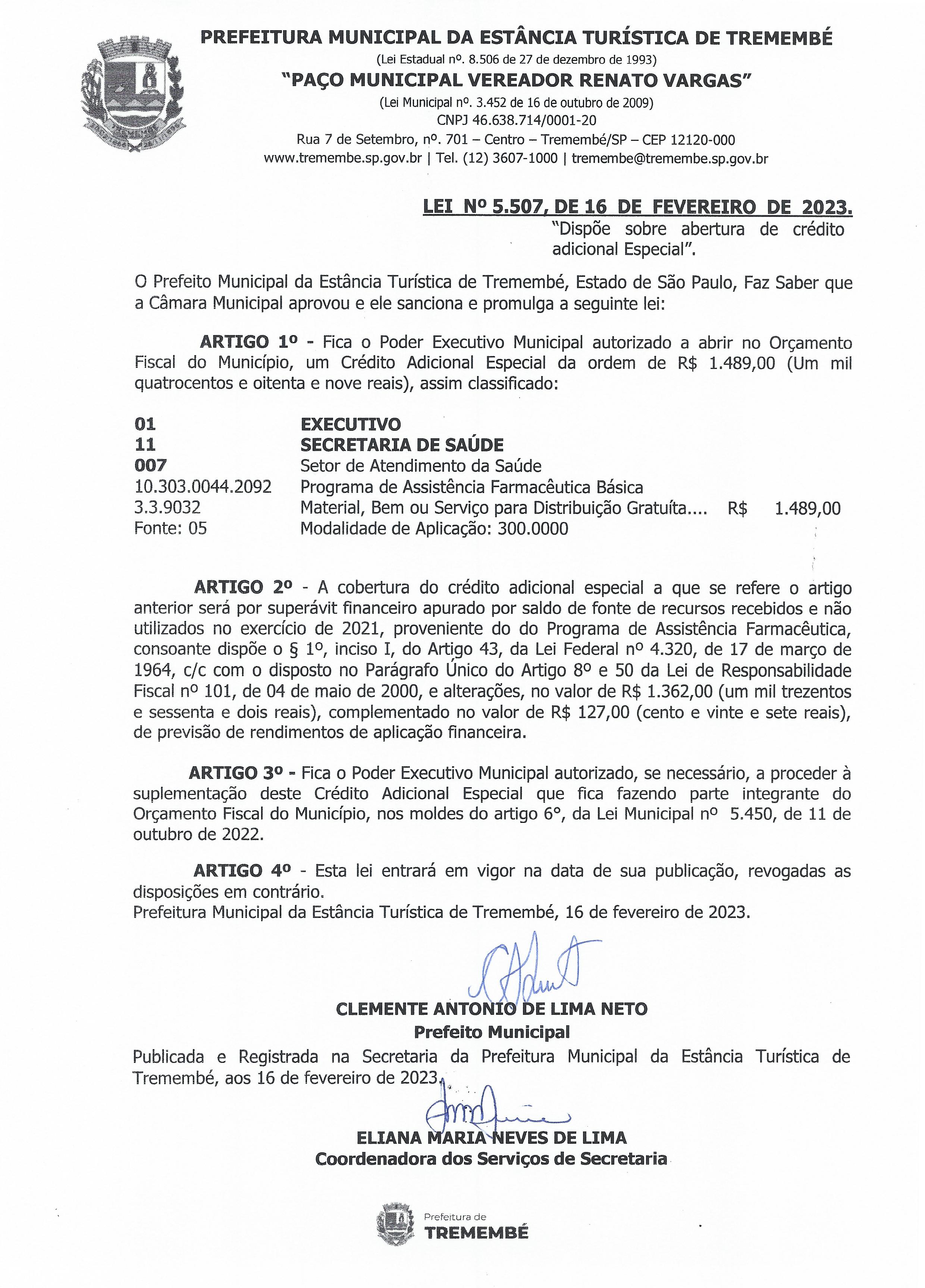 Lei nº 5.507, de 16 de fevereiro de 2023