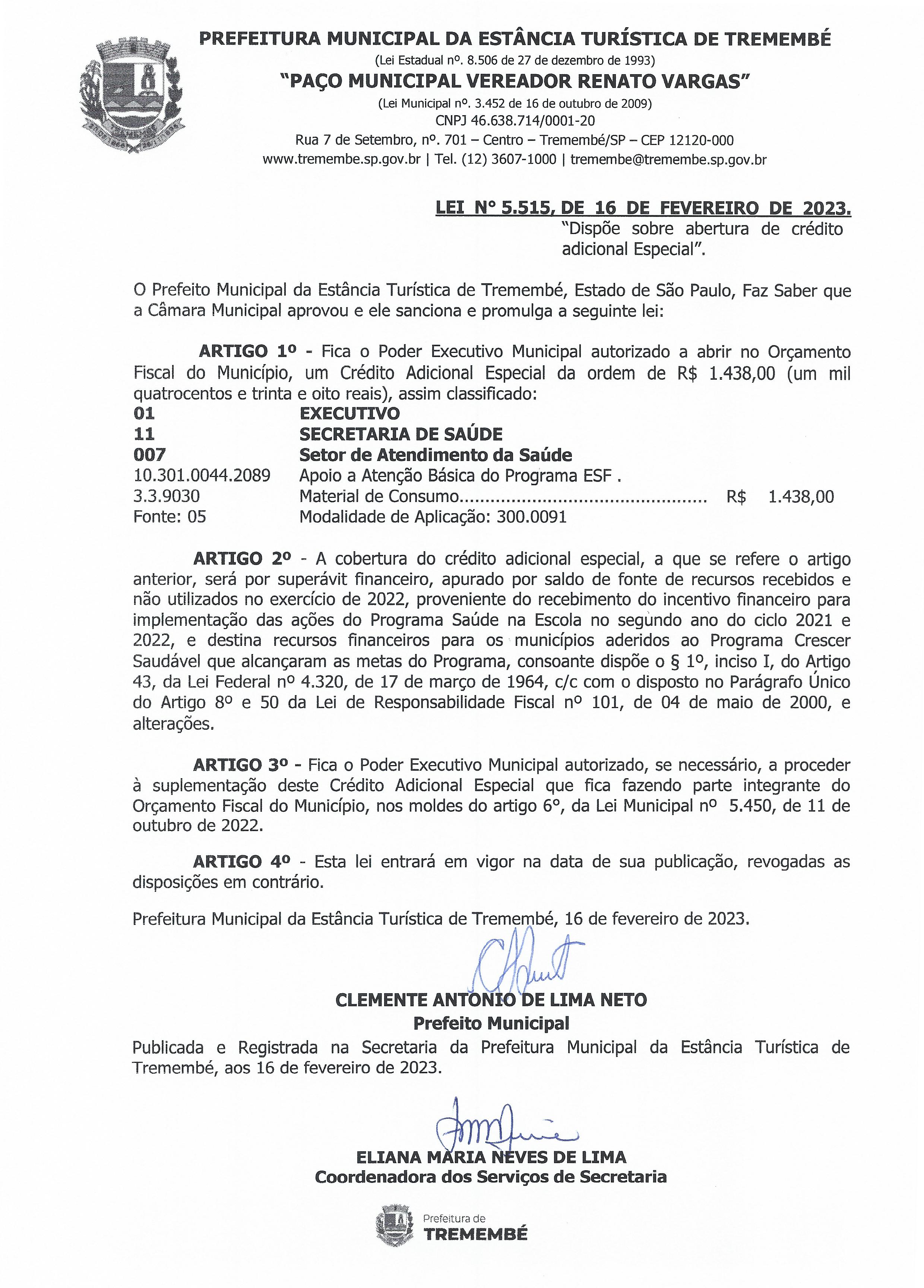 Lei nº 5.515, de 16 de fevereiro de 2023