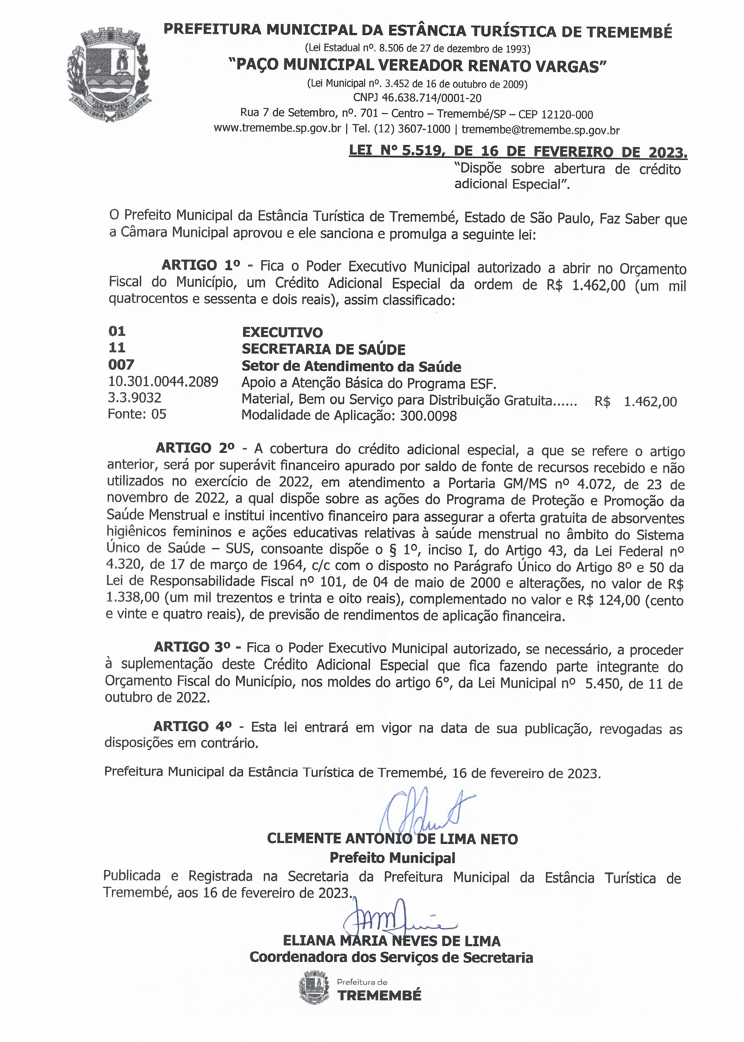 Lei nº 5.519, de 16 de fevereiro de 2023