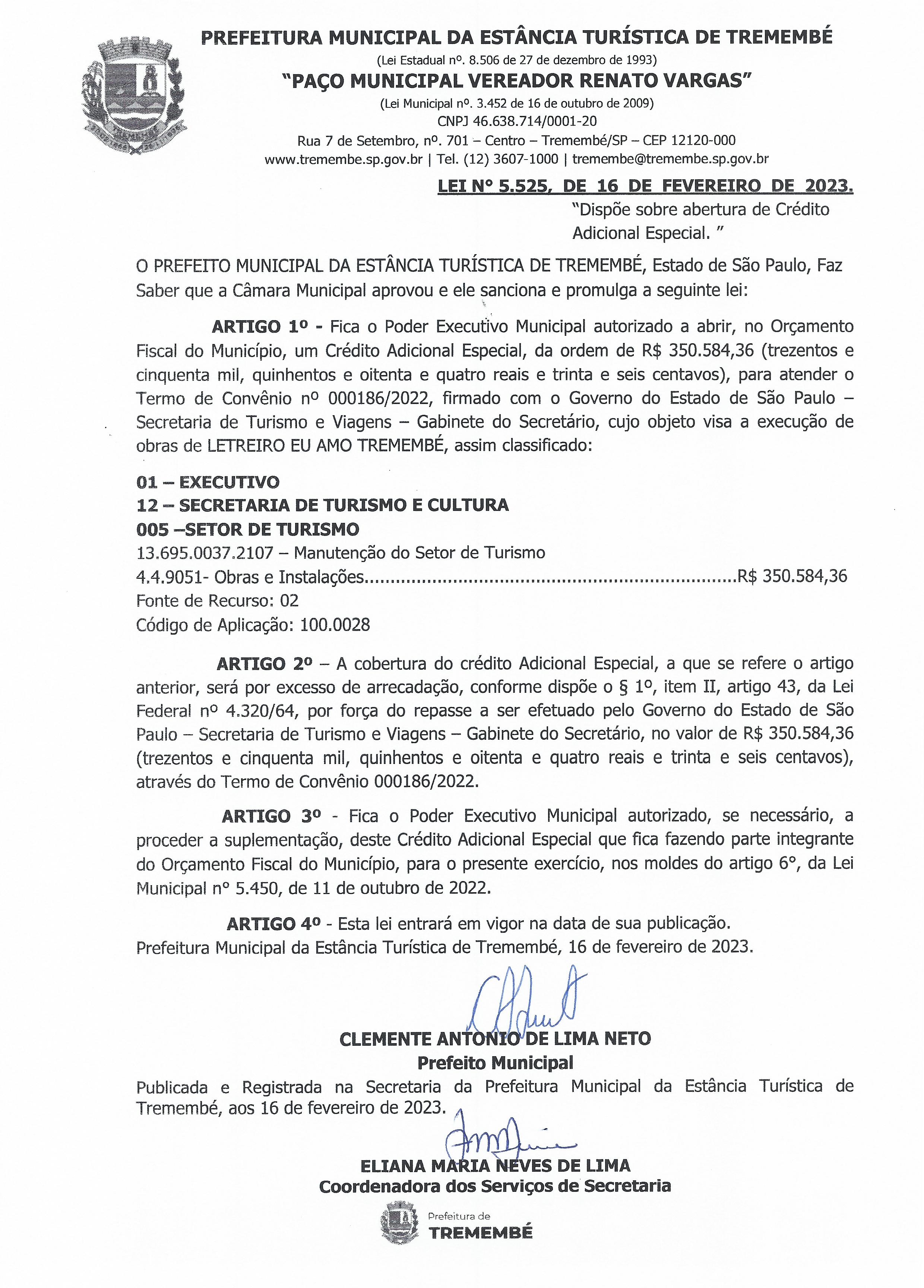 Lei nº 5.525, de 16 de fevereiro de 2023