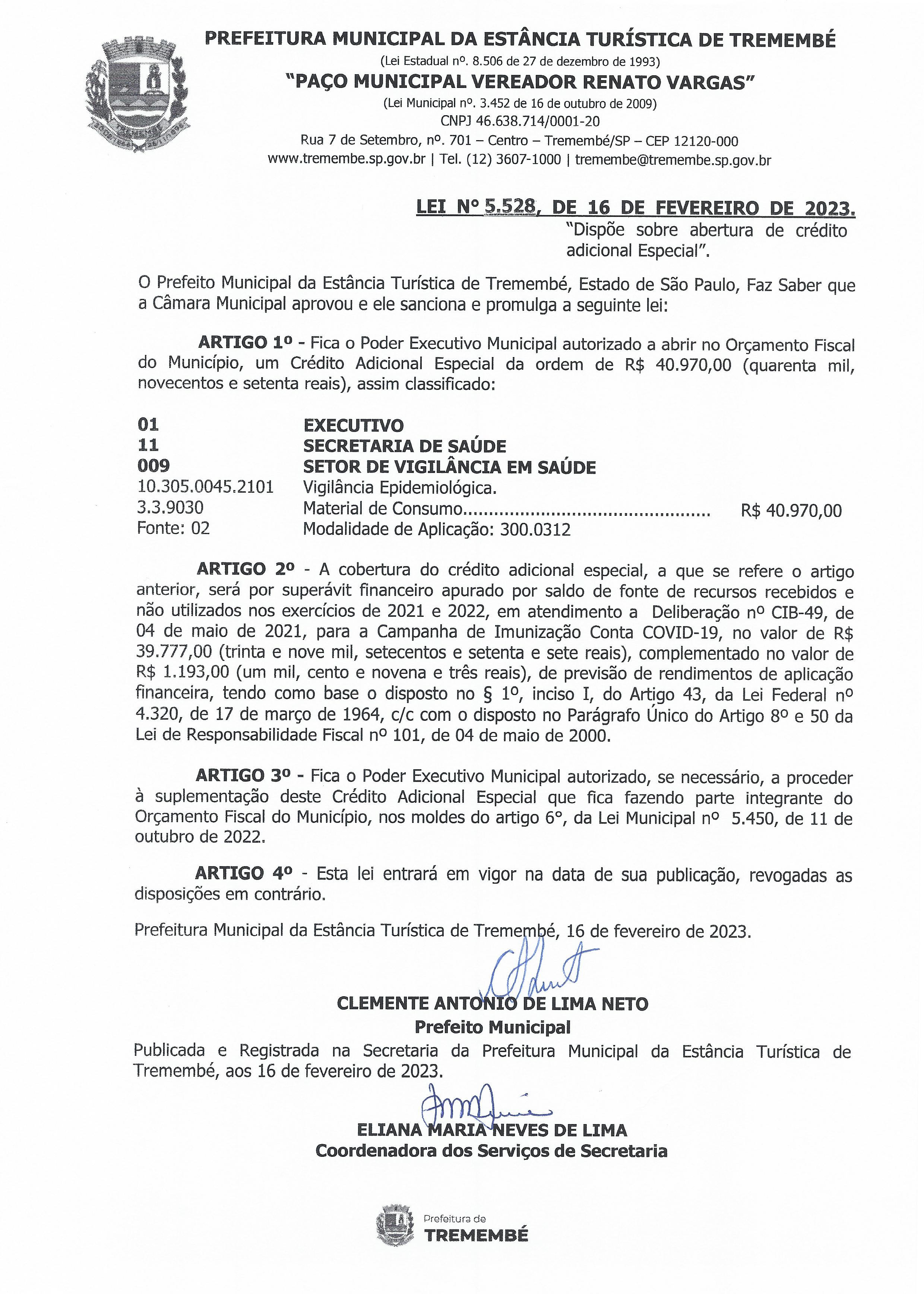 Lei nº 5.528, de 16 de fevereiro de 2023