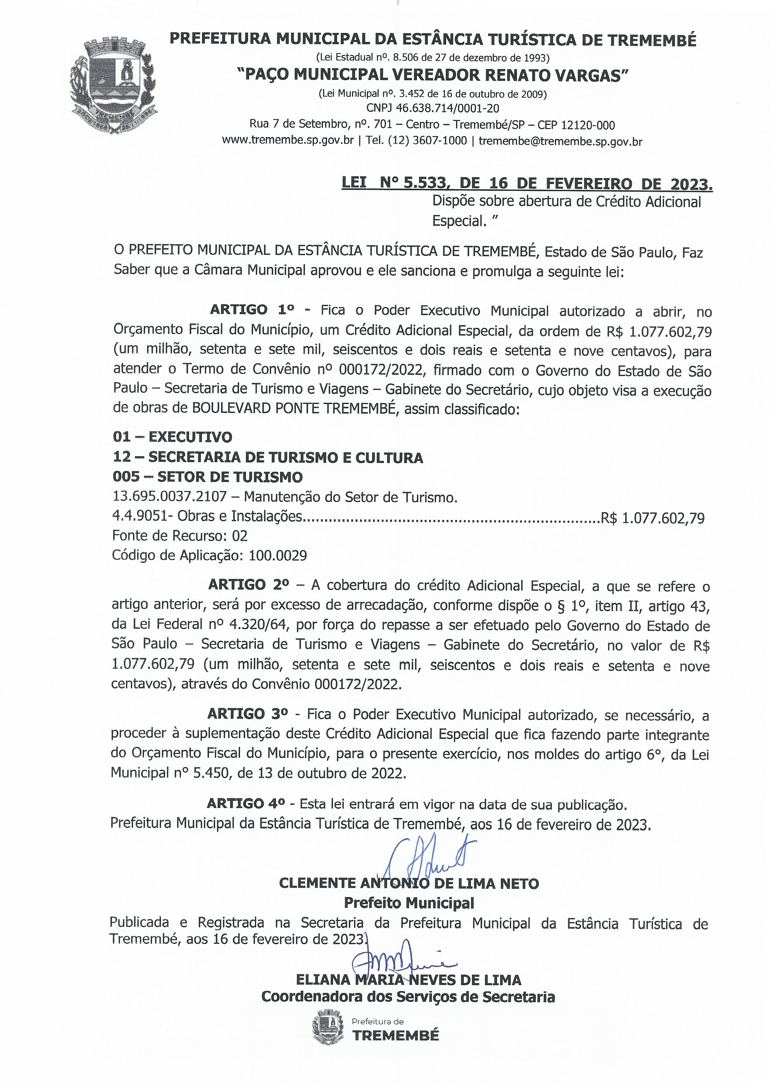 Lei nº 5.533, de 16 de fevereiro de 2023