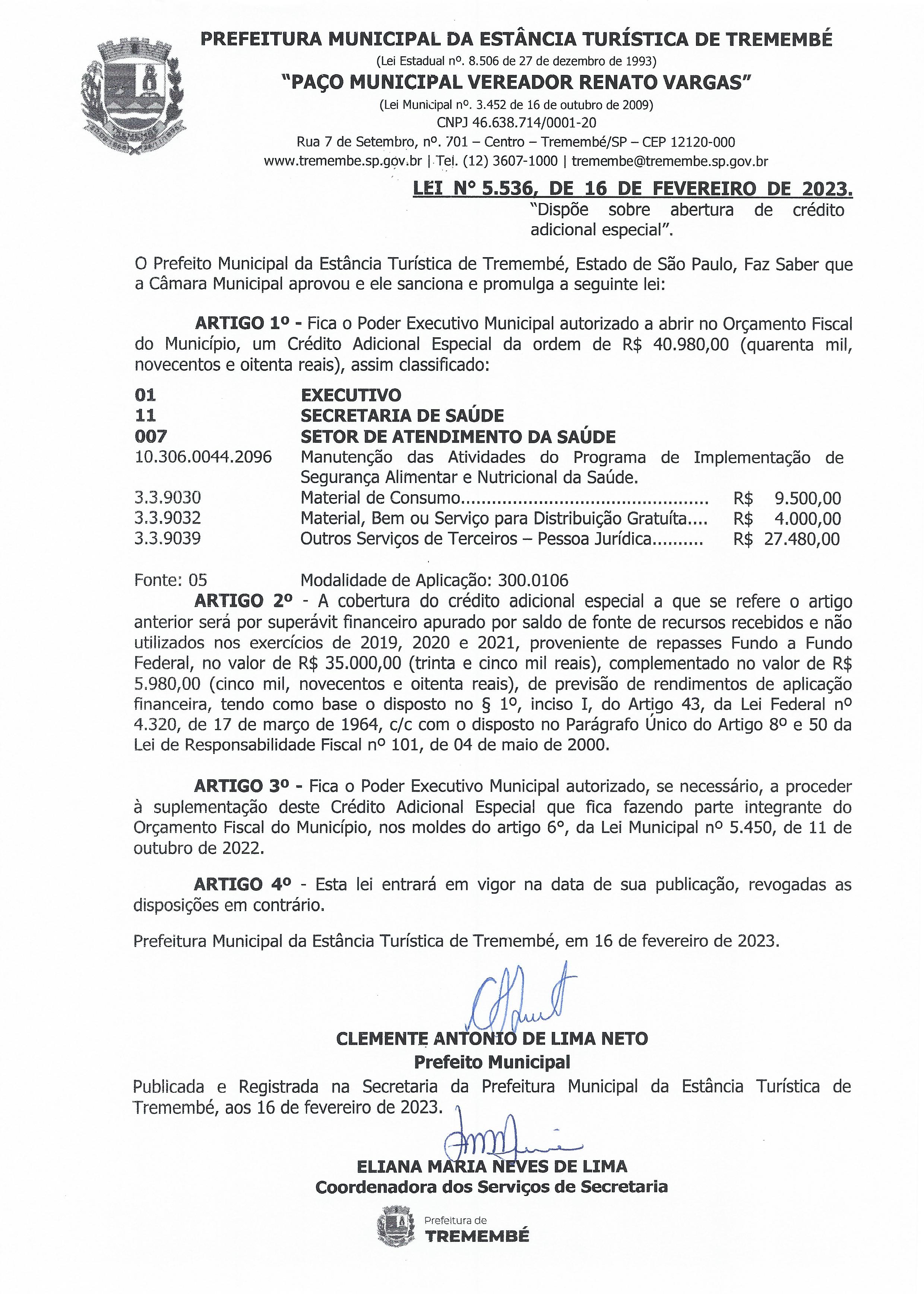 Lei nº 5.536, de 16 de fevereiro de 2023