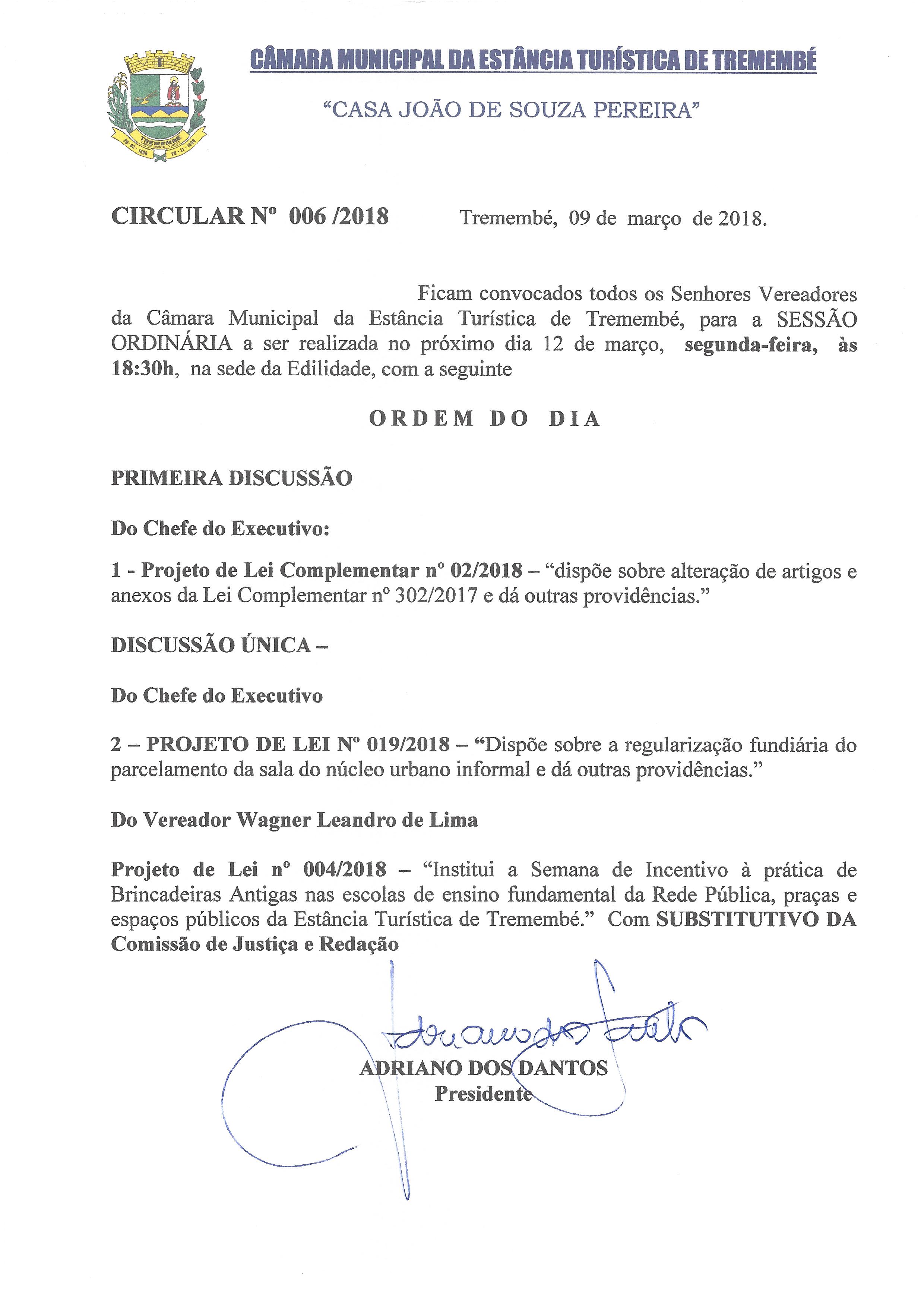 Pauta da 47° Sessão Ordinária - 12-03-2018