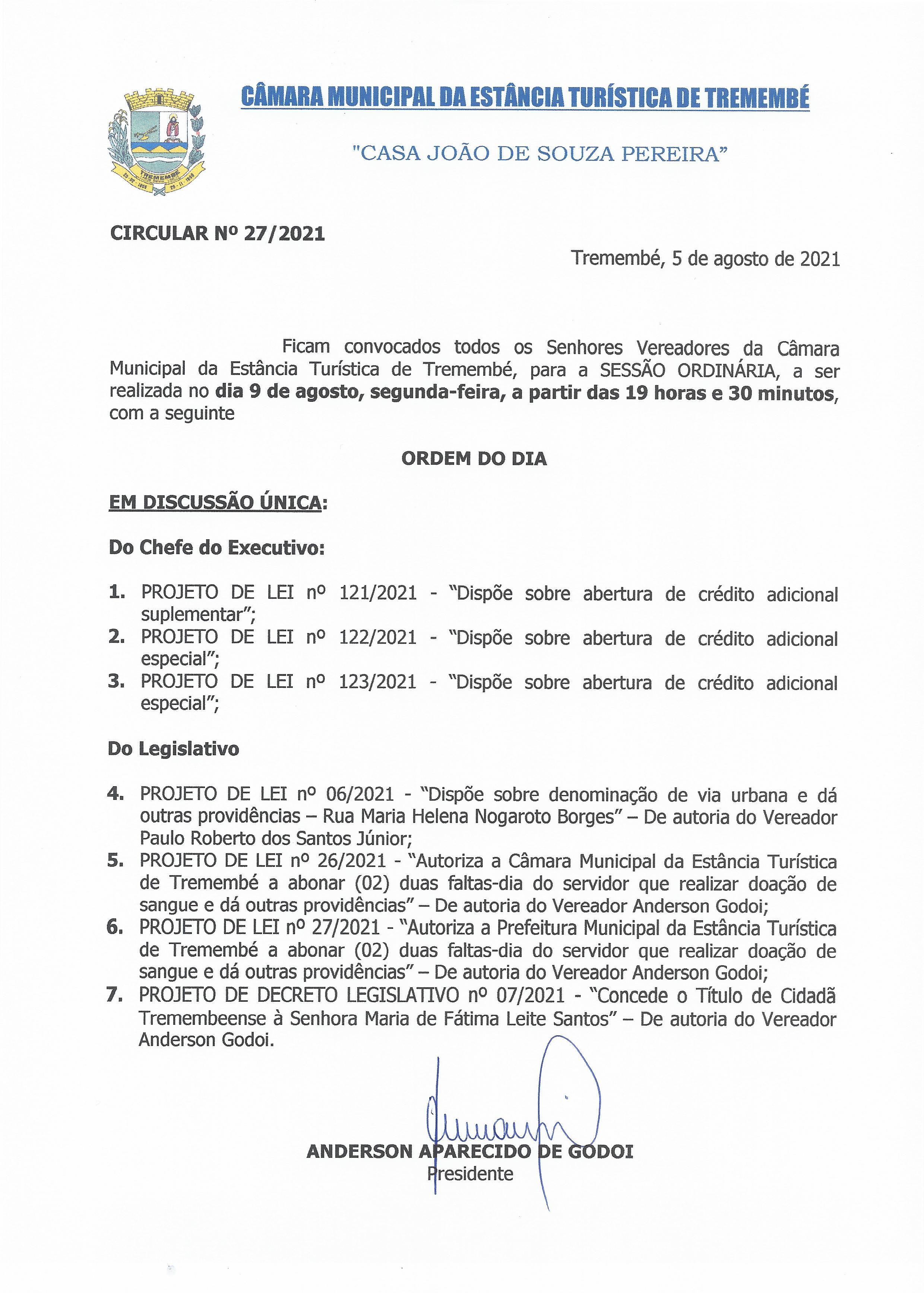 Pauta da 24° Sessão Ordinária - 09-08-2021