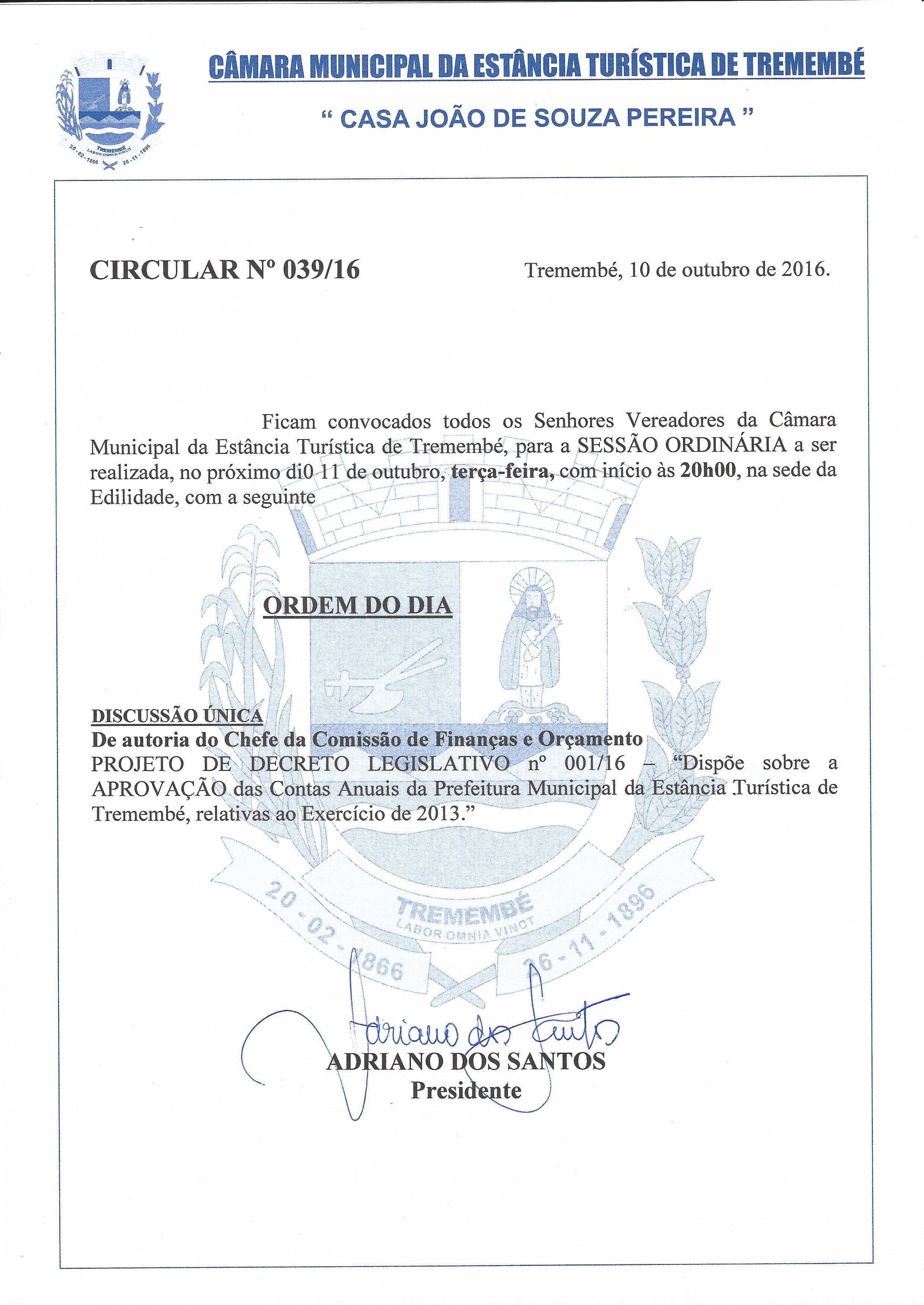 Circular N.º 039-2016 - Pauta da Sessão - Sessão Ordinária - 11-10-2016.jpg