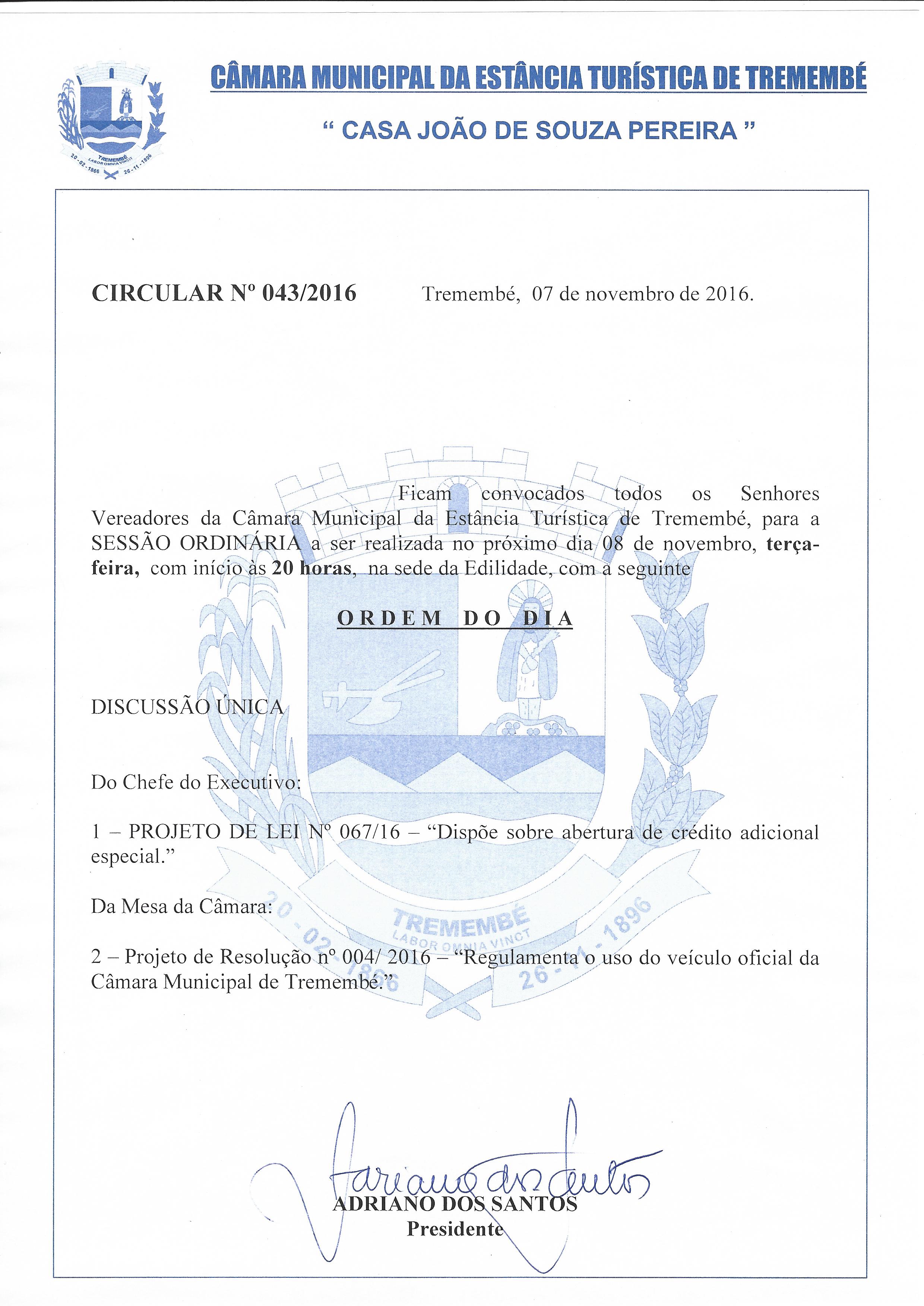 Circular N.º 043-2016 - Pauta da Sessão - Sessão Ordinária - 08-11-2016.jpg