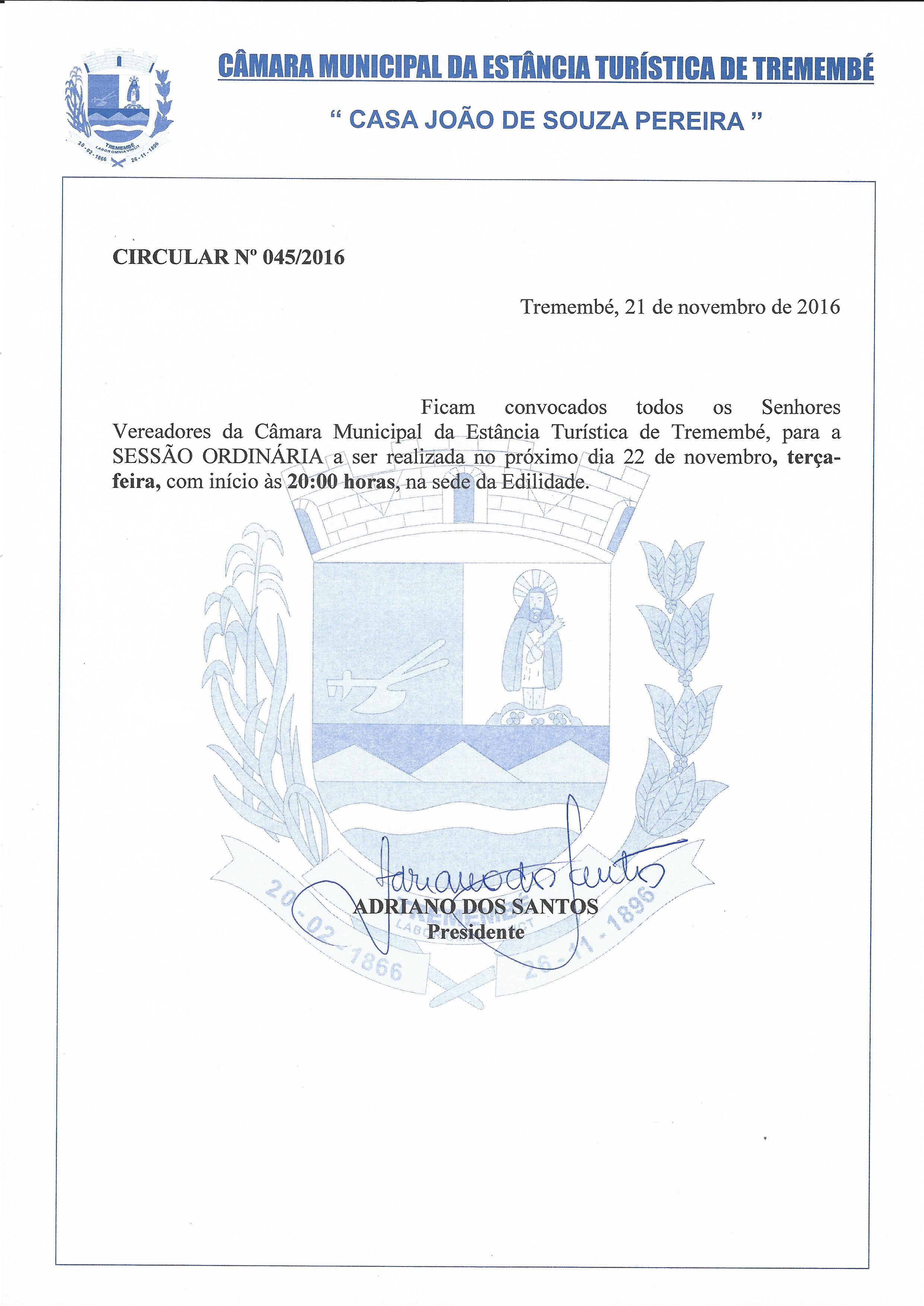 Circular N.º 045-2016 - Pauta da Sessão - Sessão Ordinária - 22-11-2016.jpg