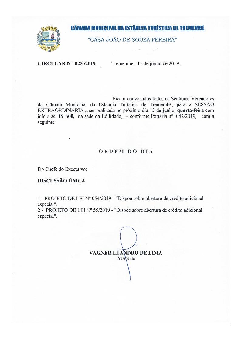 Ficam convocados todos os Senhores Vereadores da Câmara Municipal da Estância Turística de Tremembé, para a SESSÃO EXTRAORDINÁRIA, a ser realizada no dia 12 de junho , quarta-feira, a partir das 19h00. Leia mais...
