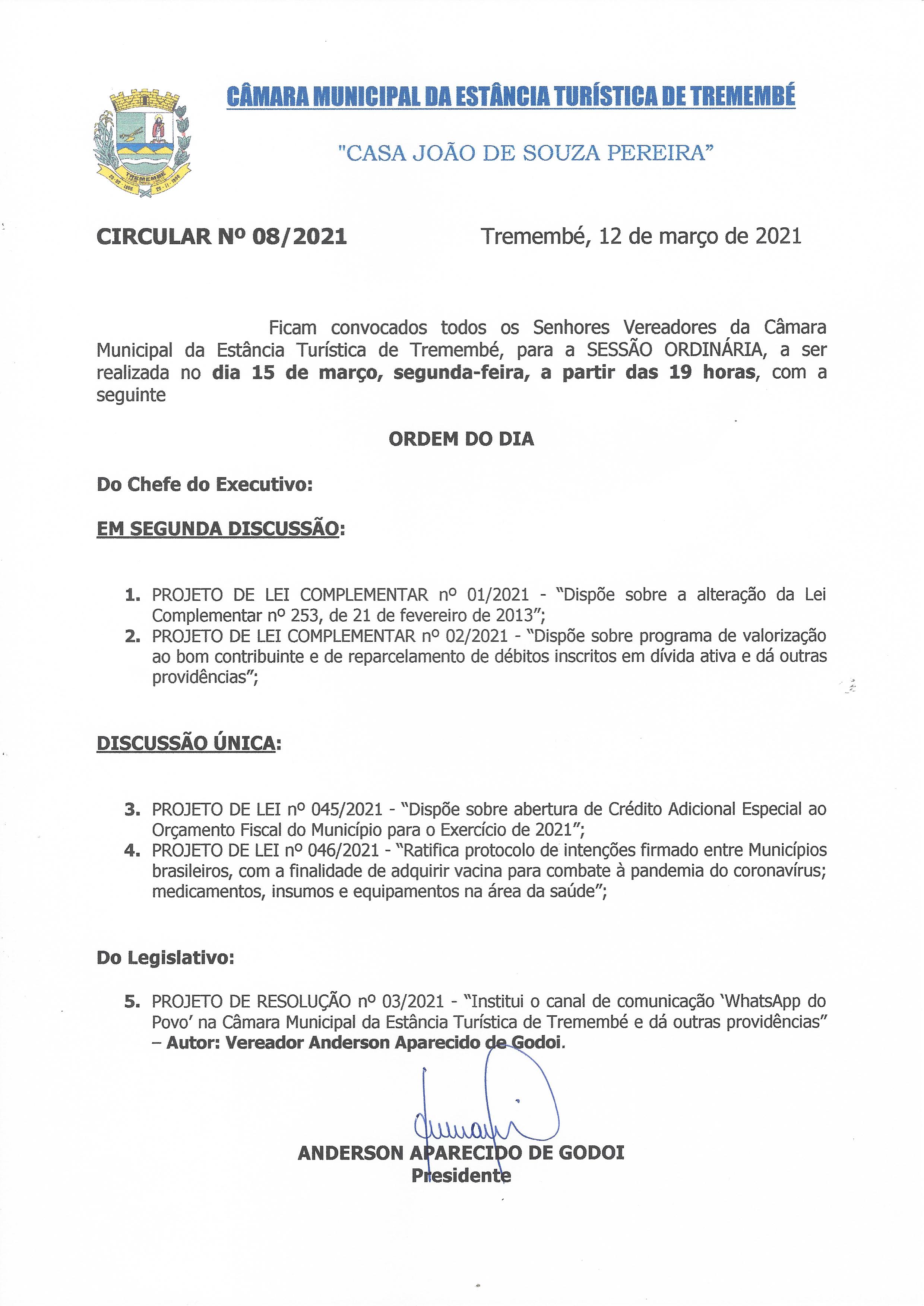 Pauta da 7ª Sessão Ordinária - 15/03/2021