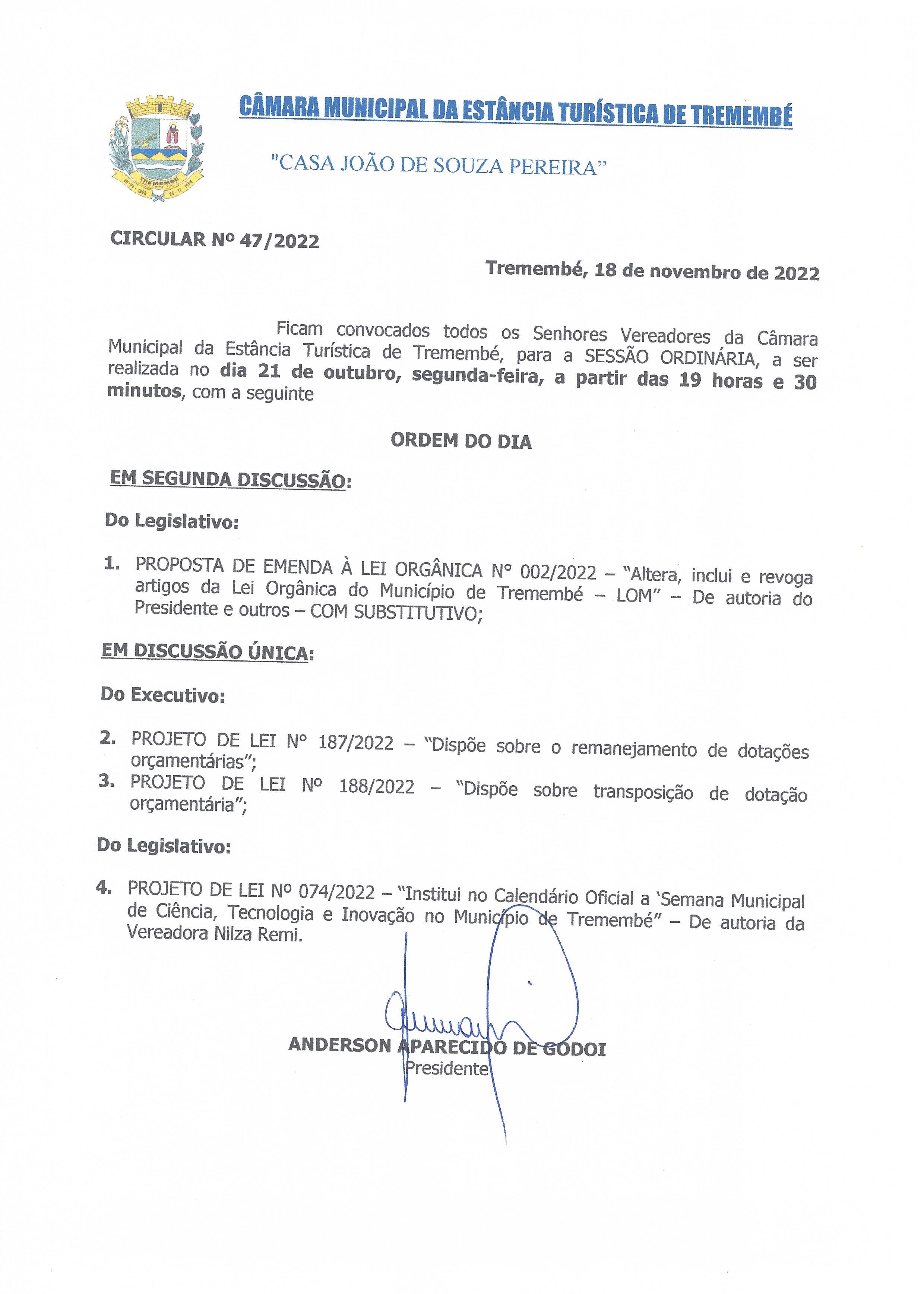 Pauta da 85ª Sessão Ordinária - 21/11/2022