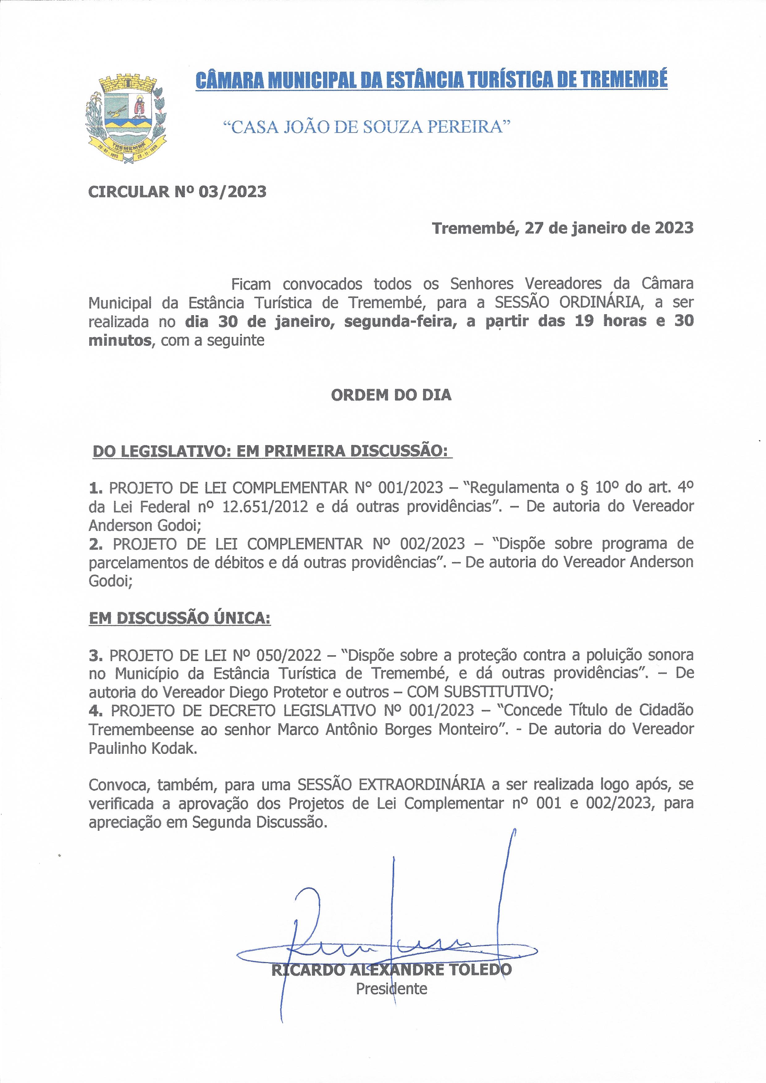 Pauta da 91ª Sessão Ordinária - 30/01/2023
