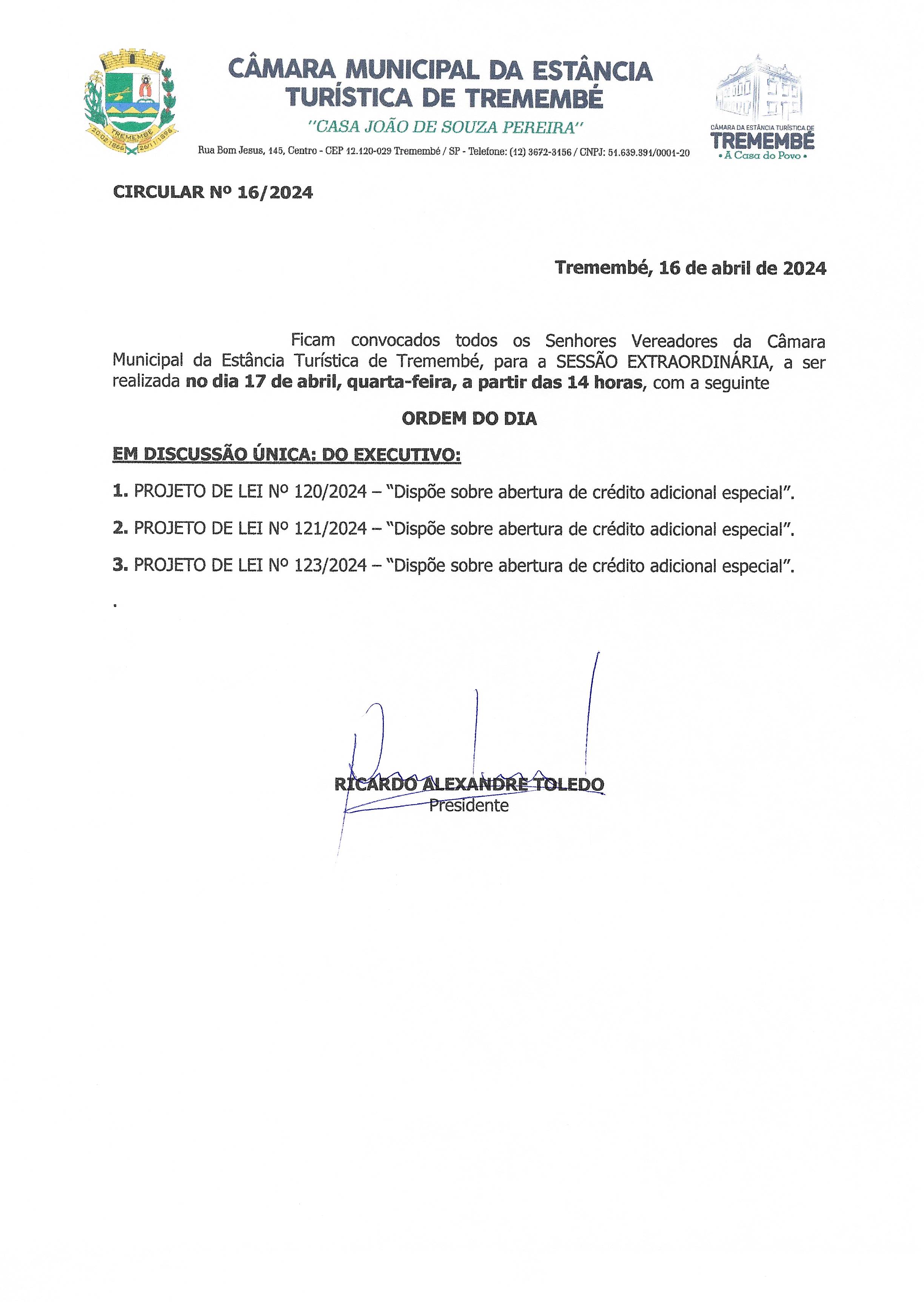 Pauta da 152ª Sessão Ordinária - 29/04/2024