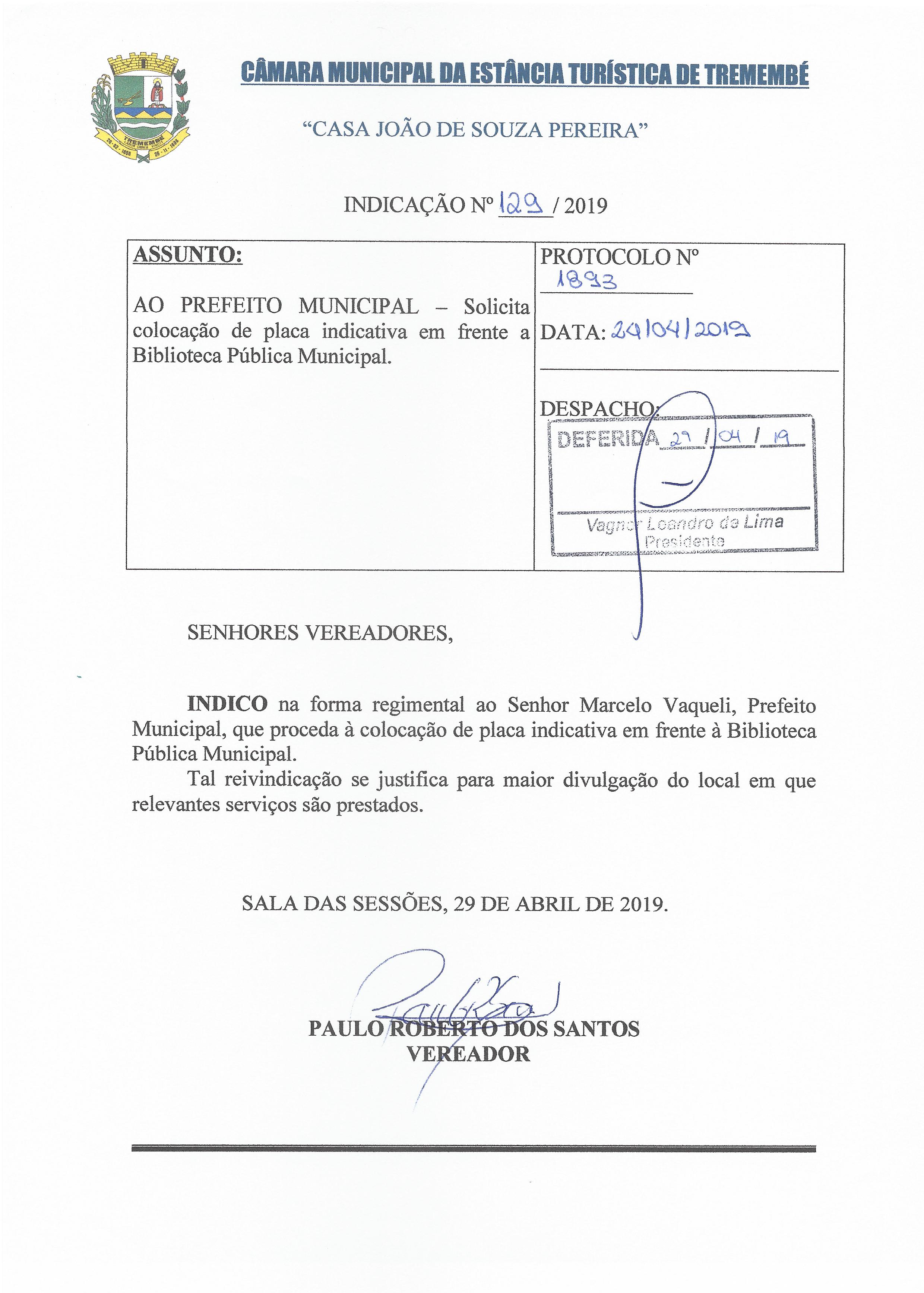 Indicação n° 129-2019 - Paulo Roberto dos Santos.jpg