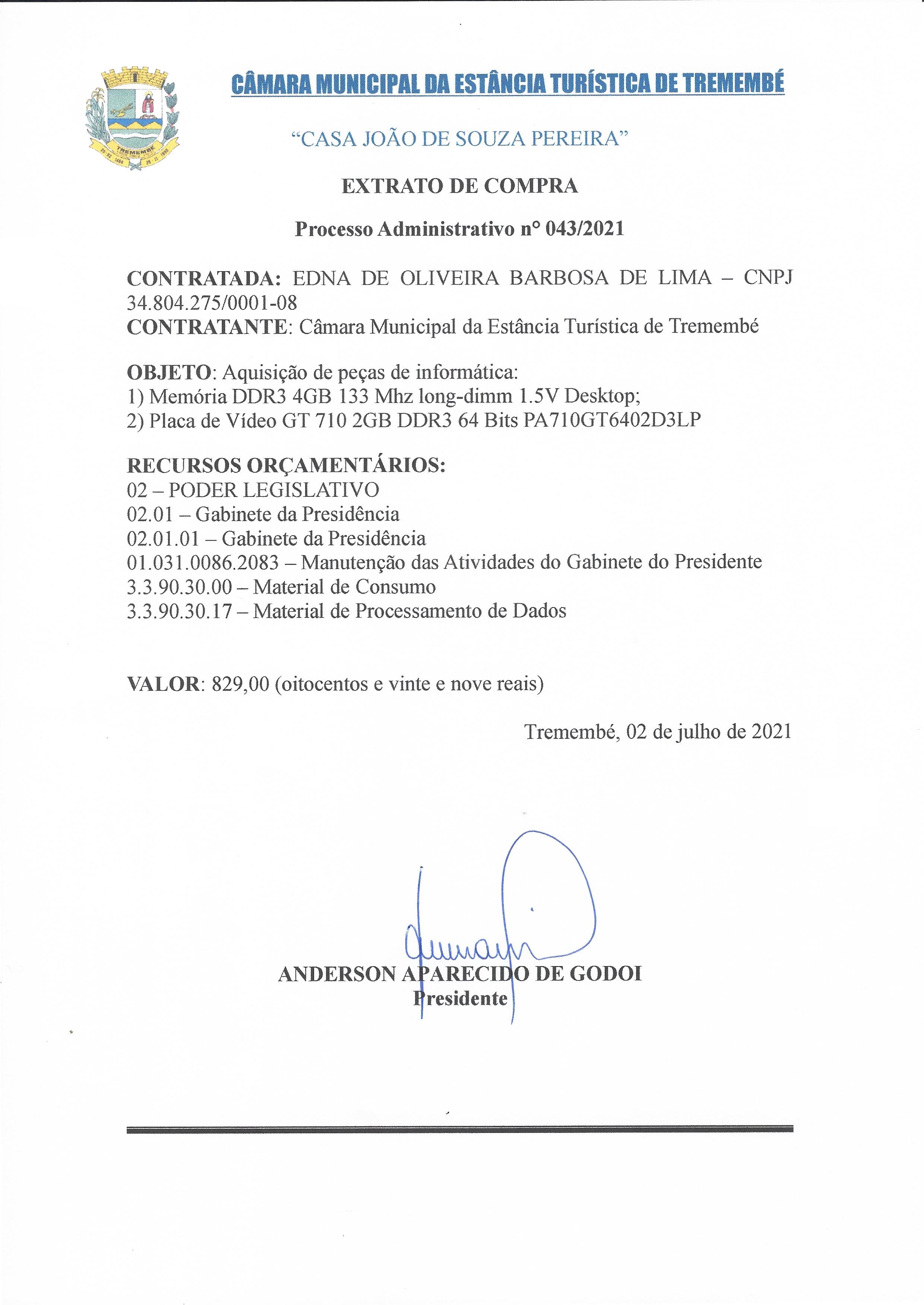 Extrato de Compra - Aquisição de peças de informática - Proc. Adm.
