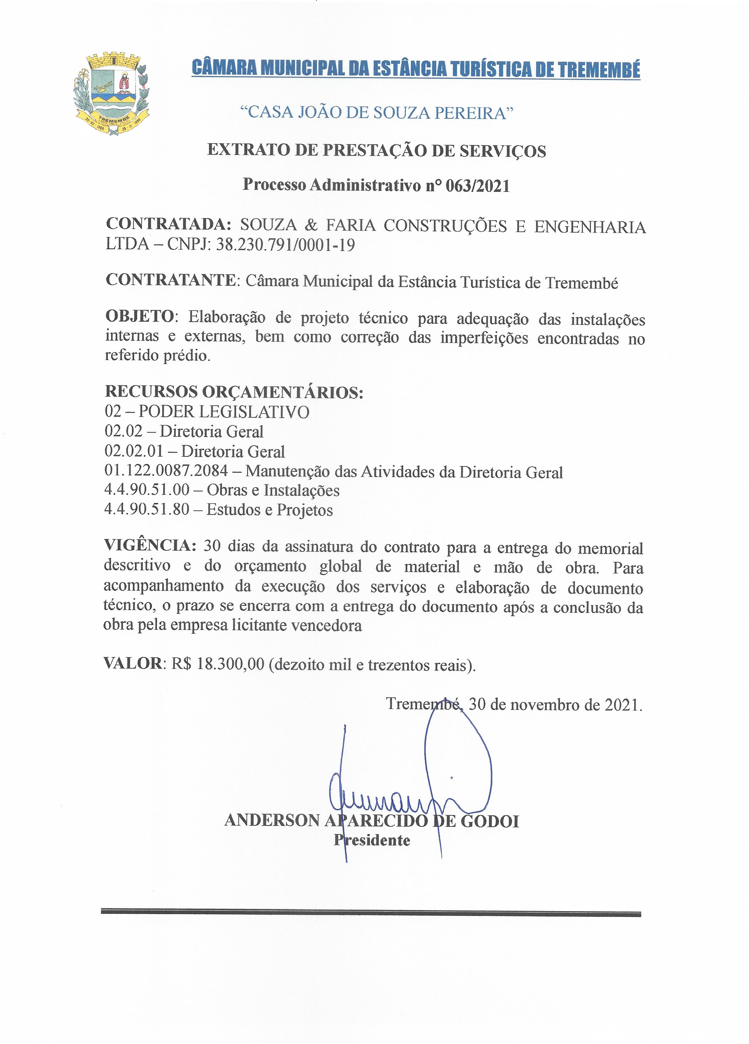 Extrato de Prestação de Serviços - Proc. Adm. nº 063/2021 - Engenharia