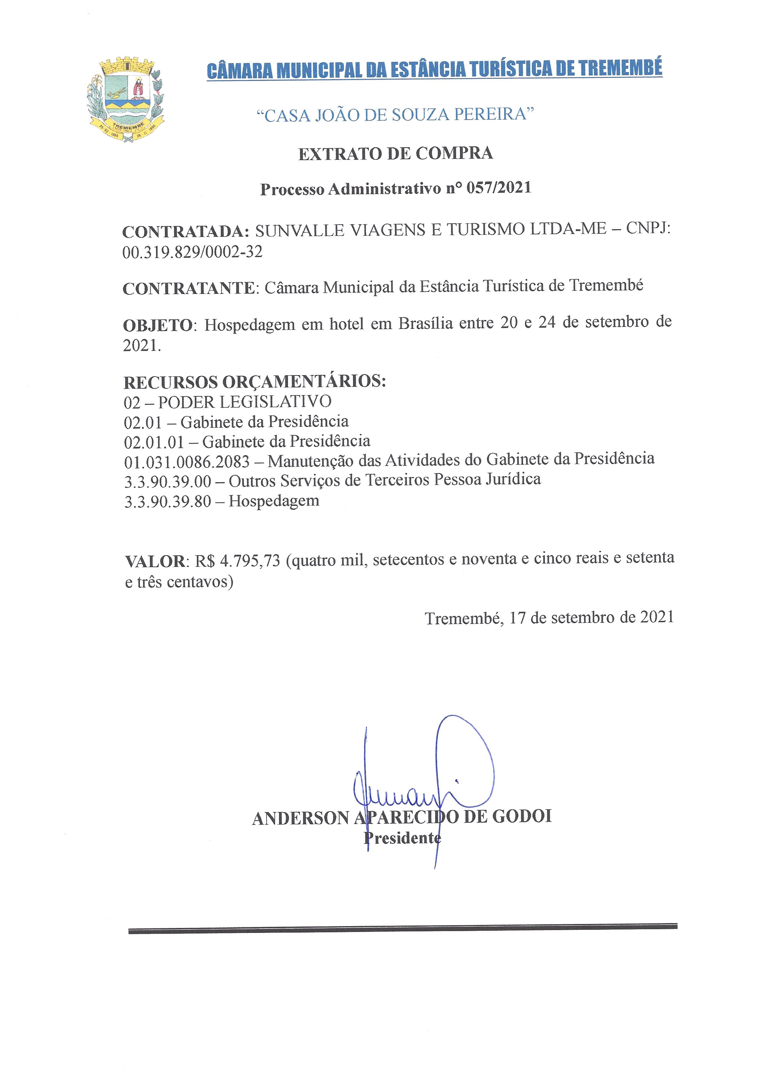 Extrato - Dispensa de Licitação - Hospedagem - Ref. Proc. nº 057/2021