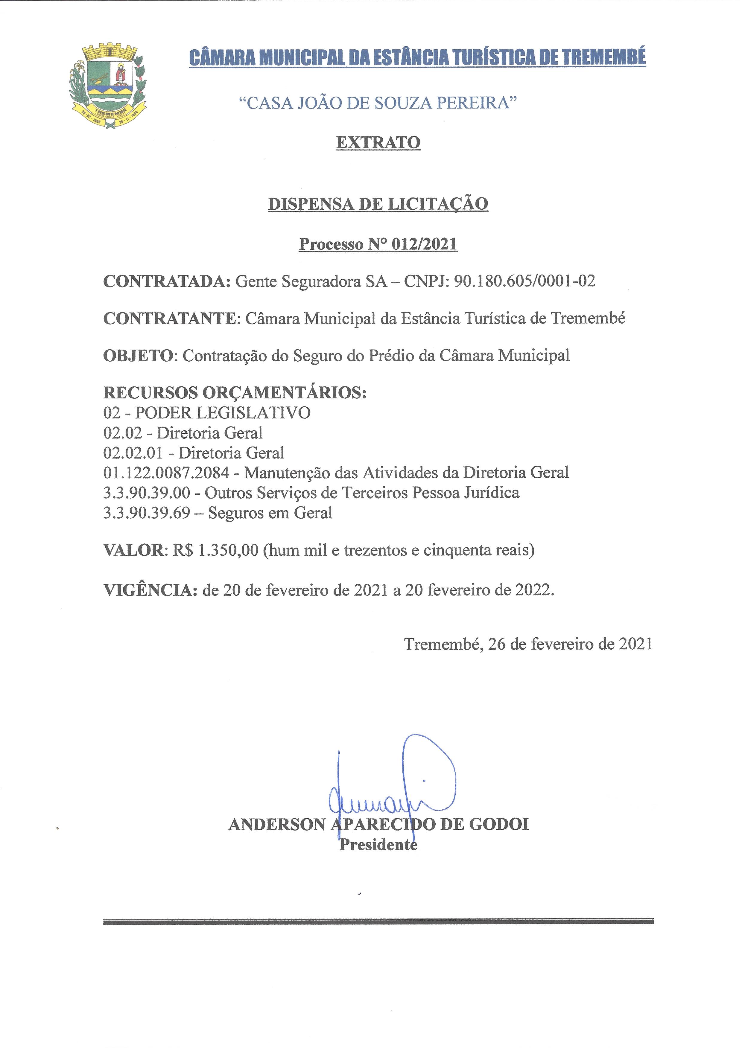 Extrato Seguro do Prédio - Processo nº 012/2021