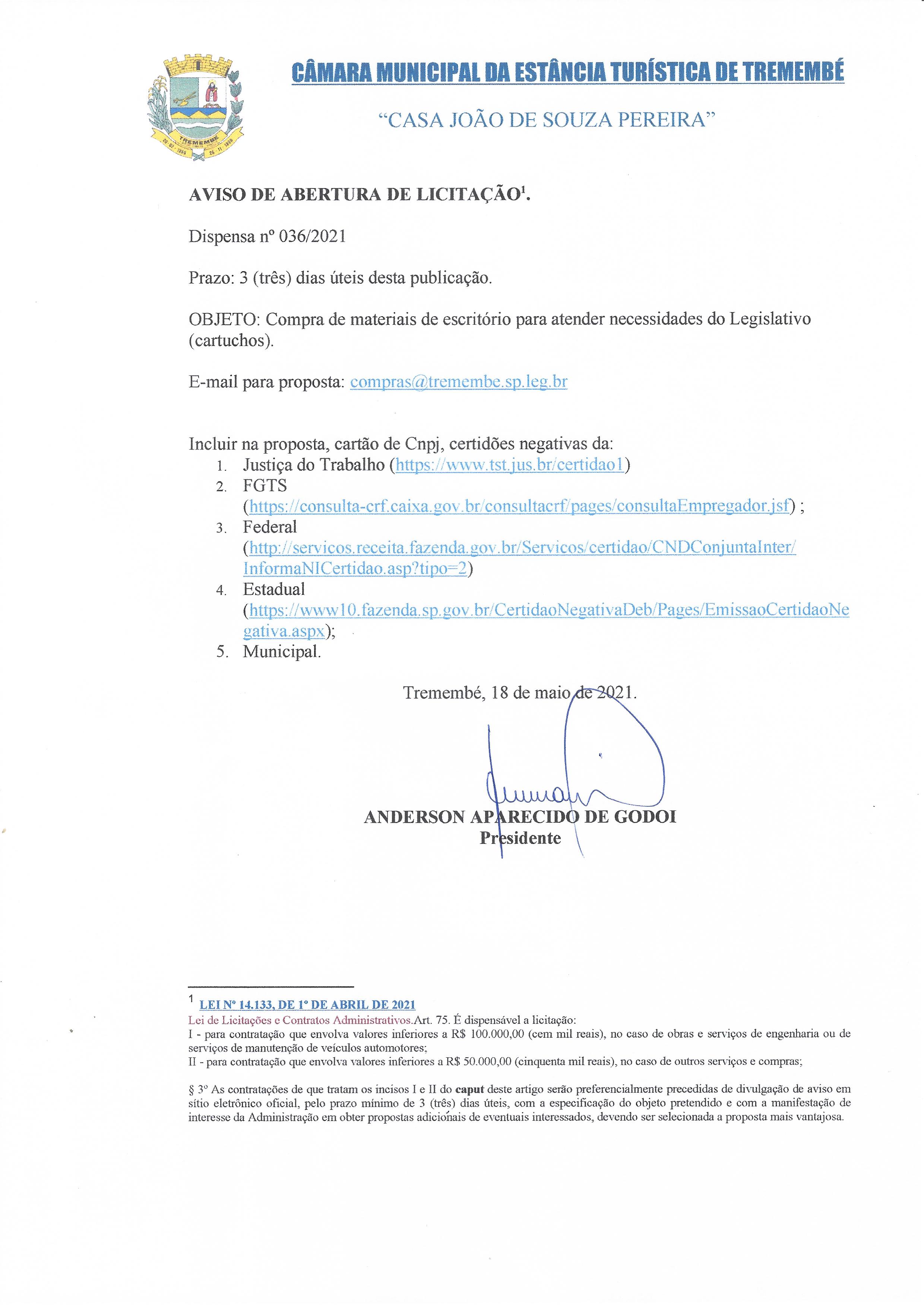 Compra de materiais de escritório para atender necessidades do Legislativo (cartuchos).
